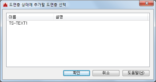 도면층 상태에 추가되지 않은 도면층의 이름 및 설명을 표시합니다. 추가할 도면층을 선택하고 확인을 클릭합니다.