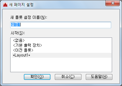 새 페이지 설정의 이름과 함께 시작점으로 사용할 페이지 설정을 지정합니다.