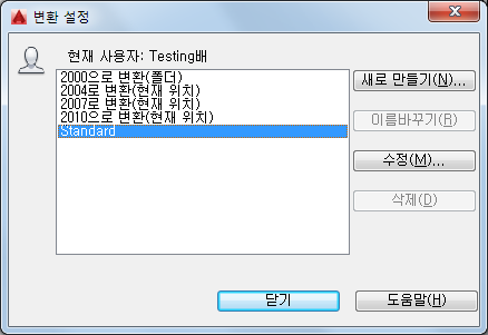 선택한 도면 변환에 대해 옵션을 지정할 수 있는 변환 설정 수정 대화상자를 표시합니다.
