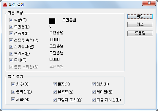 대상 객체의 도면층을 원본 객체의 도면층으로 변경합니다. 모든 객체에 사용 가능합니다.