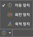 일련의 객체를 3D 축이나 평면을 따라 이동, 회전 또는 축척할 수 있는 3D 장치를 표시합니다. |