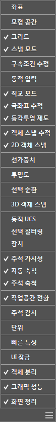 상태막대에서는 도면환경에 영향을 주는 도구에 빠르게 액세스할 수 있습니다.
