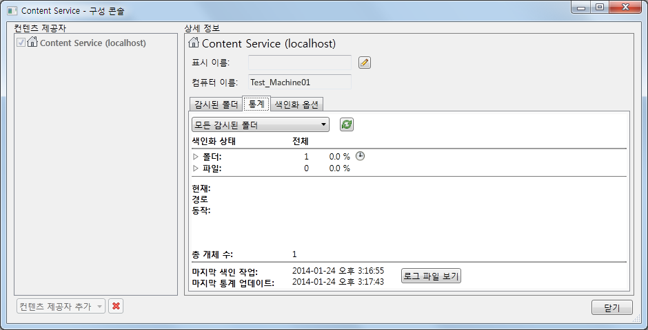 로컬 폴더의 경우 통계 정보는 8초마다 업데이트됩니다. 네트워크 폴더의 경우 갱신 을 클릭하여 정보를 수동으로 갱신해야 합니다.
