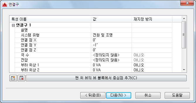 연결구에 대한 설명 입력 | 설명의 값 열에 문자를 입력합니다. 일반 전원과 같이 해당 연결구가 나타내는 항목을 식별하는 설명을 사용합니다. |