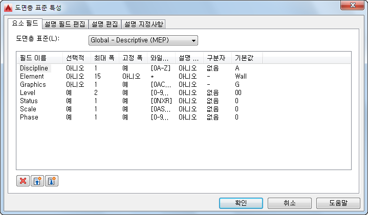 도면층 표준은 도면에서 도면층 명명 규칙을 결정합니다. 도면층 표준에는 도면에서 도면층 이름의 구조를 결정하는 규칙이 들어 있습니다. 도면층 표준을 사용하여 도면층에서 프로젝트 표준을 적용 및 관리할 수 있습니다.