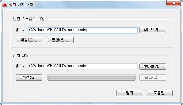 2. 장치 배치 변환 대화상자의 변환 스크립트 파일 아래에서 경로에 대해 블록을 장치 스타일로 변환하는 데 사용할 장치 변환 스크립트(CCF 파일)를 지정합니다.