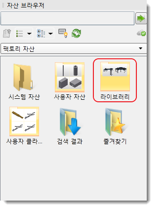 이러한 설정을 적용한 후, 연관된 프로젝트 파일이 AutoCAD Factory 자산 검색기에서 참조되어 연관된 자산이 표시됩니다(라이브러리가 프로젝트 파일에 구성된 경우).