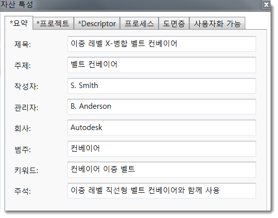 부품 번호 | 자산의 부품 번호. 비워두면 파일 이름이 부품 번호로 자동 지정됩니다. |