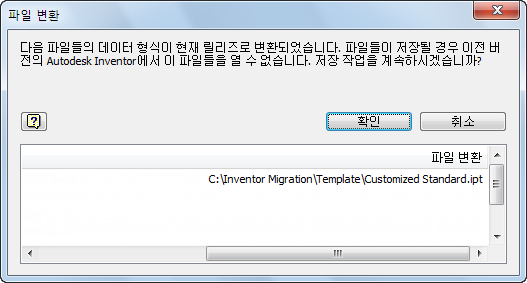 현재 Inventor의 사용자화된 템플릿을 새 릴리즈의 Autodesk Inventor로 변환합니다.