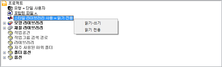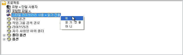 Inventor 2012의 프로젝트 파일 설정에서 스타일 라이브러리 사용 = 아니오 옵션이 제거되었습니다. Inventor 2012부터 스타일이 스타일 라이브러리의 스타일과 일치하는 경우 Inventor 문서에서 모든 스타일이 자동으로 소거됩니다. 이전 버전의 스타일 라이브러리가 아니라 사용자화된 템플릿을 기반으로 사용자화된 스타일을 정의할 경우 다음 그림과 같이 스타일 라이브러리 사용 = 예 또는 읽기-쓰기로 설정하십시오. 이 작업을 수행하면 사용자화된 템플릿의 사용자화된 스타일을 새 Inventor 버전의 스타일 라이브러리에 저장합니다.