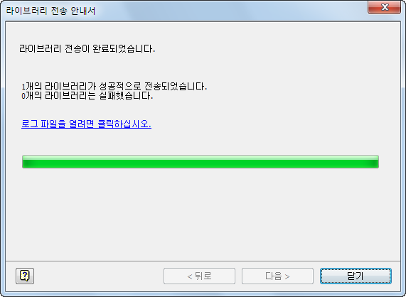 - [다음]을 클릭하여 라이브러리를 전송합니다. 그림 5를 참고하십시오. 닫기를 클릭하여 마칩니다.