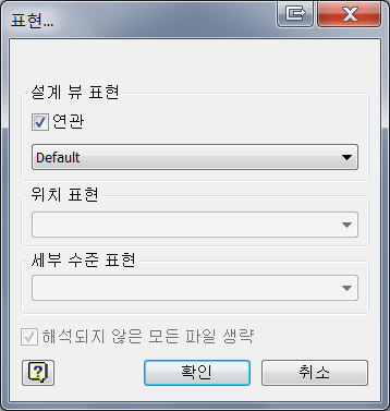 새 표현 대화상자를 사용하여 현재 설계 뷰 및 연관성을 변경합니다. 새 대화상자에 액세스하려면 프리젠테이션의 모형 검색기 내에서 새 분해 노드를 마우스 오른쪽 버튼으로 클릭하고 표현을 선택합니다.