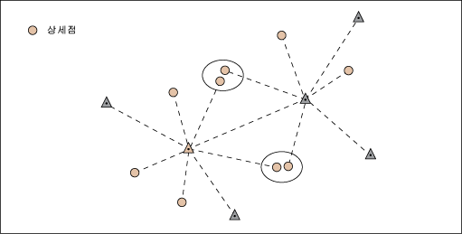 다섯 번째 계산 단계에서는 두 번 이상 측정된 점을 식별할 수 있습니다. 이전 계산 단계의 근사값으로 각 점에 대한 좌표가 생성됩니다. 일반적으로 동일점의 경우 이 좌표가 약간 다릅니다.