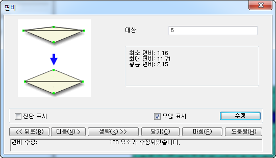 메쉬 > 메쉬 수정 > 메쉬 수정 마법사를 클릭하여 마법사의 대화상자를 엽니다.