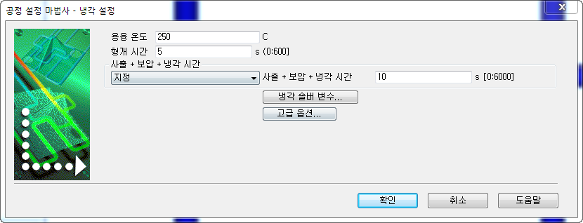 사출 + 보압 + 냉각 시간을 10초로 설정합니다.