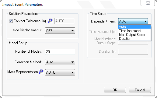 - 시간 증분: 충격 해석의 시간 증분입니다. 내부적으로 계산된 시간 증분을 재정의합니다.
