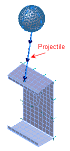 - 발사체 변환 벡터: 임팩터의 이동 방향을 정의하는 스케치 선을 선택해야 합니다. 임팩터에 대한 스케치 선의 기하학적 점은 노드에 위치해야 합니다. 메쉬 컨트롤을 사용하면 노드를 특정 점/정점/모서리에 배치할 수 있습니다. 대상에 대한 스케치 선의 기하학적 점을 충격 위치에 배치합니다.