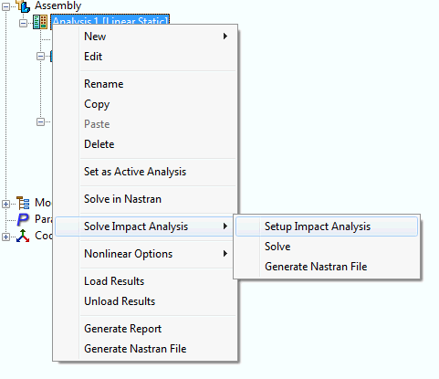 트리로 이동하여 해석을 마우스 오른쪽 버튼으로 클릭한 다음 충격 해석 해석-충격 해석 설정을 선택합니다. 다음과 같은 충격 해석 설정이 나타납니다.