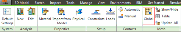 리본의 메쉬 패널 아래에 있는 전역 버튼을 클릭하거나 메쉬 모델을 마우스 오른쪽 버튼으로 클릭하고 편집을 선택합니다.