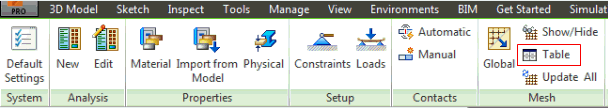 전환 대상 아래에서 메쉬 테이블을 선택한 다음 메쉬 모델 아래에서 편집을 선택하거나 리본 막대에서 테이블 버튼을 클릭하면 다음 양식이 나타납니다.
