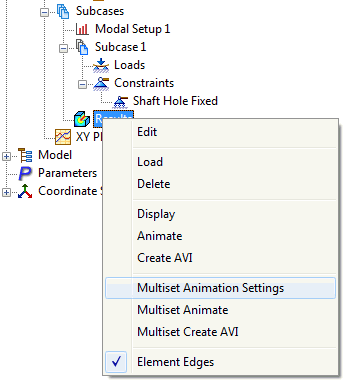 - 부품 뷰: 이 섹션에서는 특정 부품을 애니메이션하기 위한 부품을 선택할 수 있습니다. 결과 플롯 대화상자에도 동일한 옵션이 있습니다.