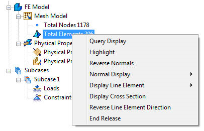 - 법선 반전: : 메쉬 요소 법선의 방향을 반전시킵니다. 이 옵션은 쉘 요소를 사용하는 경우에만 사용할 수 있습니다. 표시 옵션 아래에 있는 두 가지 옵션 중 하나를 선택할 수 있습니다.