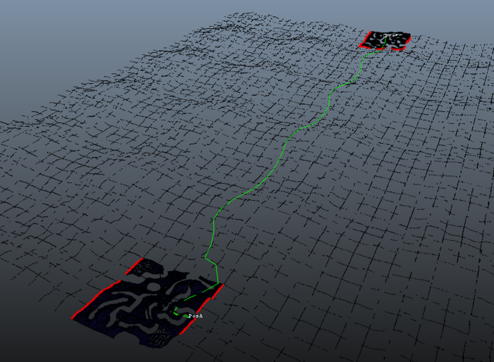 다음 그림은 시작점과 끝점에서만 NavMesh와 함께 AbstractGraph를 사용하여 계산된 경로를 보여줍니다.