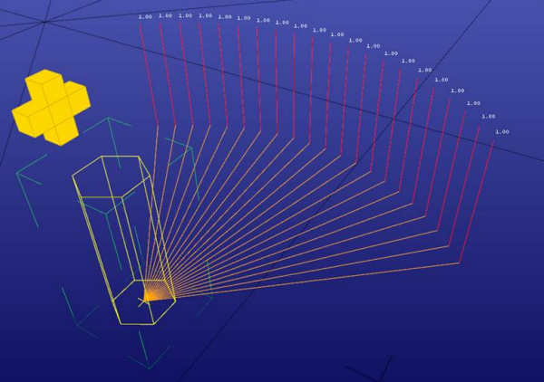 이제 경로 따르기 방향 주위로 N 회피 속도의 샘플을 생성합니다. 다음 그림은 생성된 속도 샘플을 보여주며 기본 점수는 모두 1.0입니다.