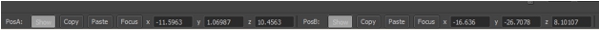 Navigation Lab에서 쿼리의 시작 및 끝점을 쉽게 검색할 수 있습니다. 주 창의 맨 아래에 Navigation Lab이 3D 공간의 A 및 B 마커의 위치를 나열합니다(Navigation 좌표계로 표현됨). Copy 버튼을 클릭하여 이러한 값을 클립보드에 복사합니다.
