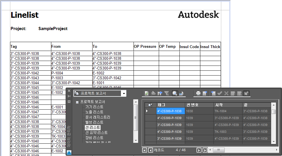 (CAD 관리자는 필요에 따라 프로젝트 설정에서 새 보고서를 구성할 수 있음) |