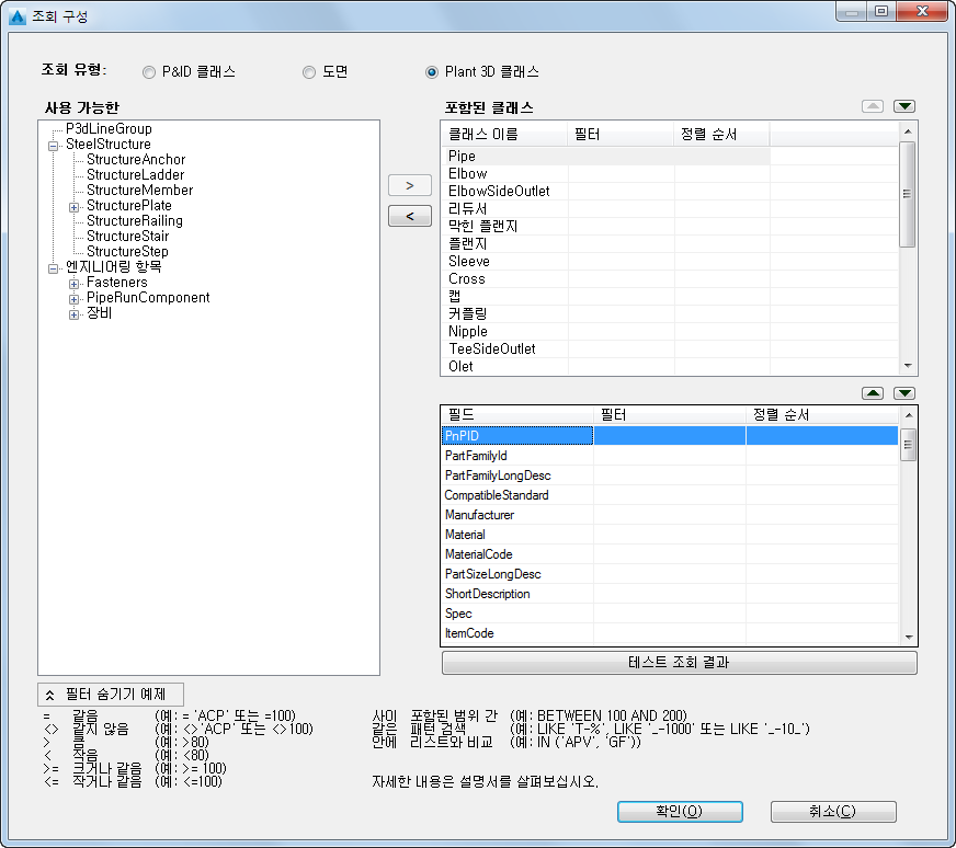 - 조회 유형에서 P&ID 클래스, 도면 또는 Plant 3D 클래스를 클릭합니다.