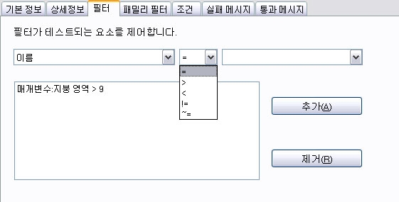 필터를 정의했으면 추가 버튼을 사용하여 활성 리스트에 필터를 추가합니다.