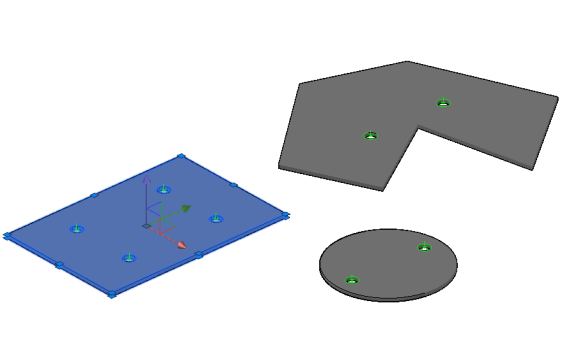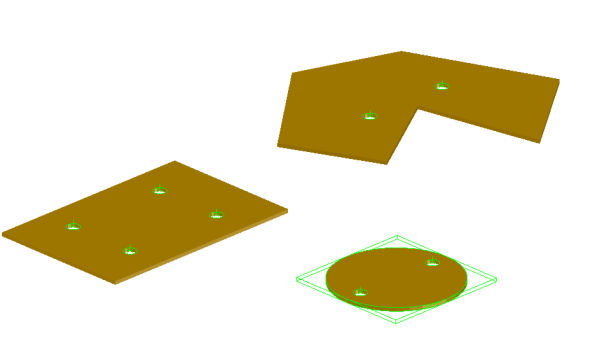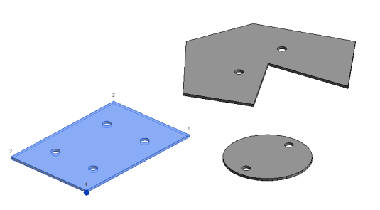 아래 이미지는 Advance Steel에서 직사각형, 폴리곤 및 원형 플레이트를 포함하는 모델을 표시합니다. 모델은 Revit으로 전송된 다음 .smlx를 통해 다시 Advance Steel로 보내졌습니다. 플레이트는 Advance Steel에서 플레이트 객체로 가져옵니다.