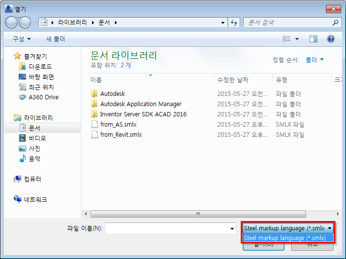 .smlx 형식은 확장에서 사용되는 기본 형식이지만, IFC, CIS/2, PSS, SDNF의 다른 형식도 지원됩니다.