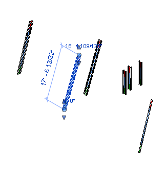 아래 이미지는 Advance Steel에서 여러 개의 경사 및 수직 기둥을 포함하는 모델을 표시합니다. 모델이 Revit으로 전송되었고, 여기서 기둥을 "경사 - 끝점 기반" 기둥 스타일로 가져왔습니다.