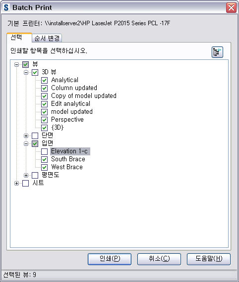 | 인쇄할 도면 선택 | 리스트에서 해당 확인란을 선택합니다( |