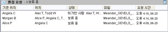 편집 요청 창에는 다음과 같은 요청이 나열됩니다.