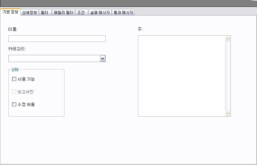 - 각 검사를 위해 사용자가 제공하는 참조 자료입니다. 이 정보는 선택 사항입니다. 작성/수정 날짜, 작성 이유, 검사 작성자 등을 고려해야 합니다.