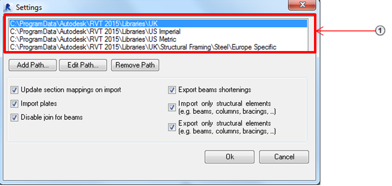 - Revit 라이브러리에 대한 경로 구성 - 강철 단면 정의
