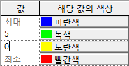 기본적으로 최대 및 최소 값-색상 쌍이 있습니다. 이 값은 표시된 데이터에 대해 상대적입니다. 최소값 및 최대값의 색상만 지정할 수 있습니다. 이 값-색상 쌍은 삭제할 수 없습니다.