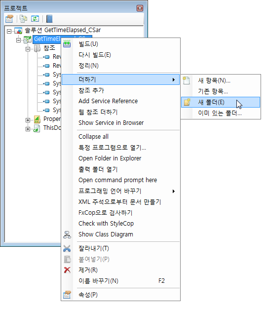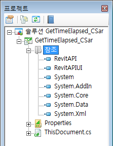 이 예제에서 GetTimeElapsed_CSharp를 위해 새로 고친 IDE 프로젝트 탐색기에는 다음이 포함되어 있습니다.