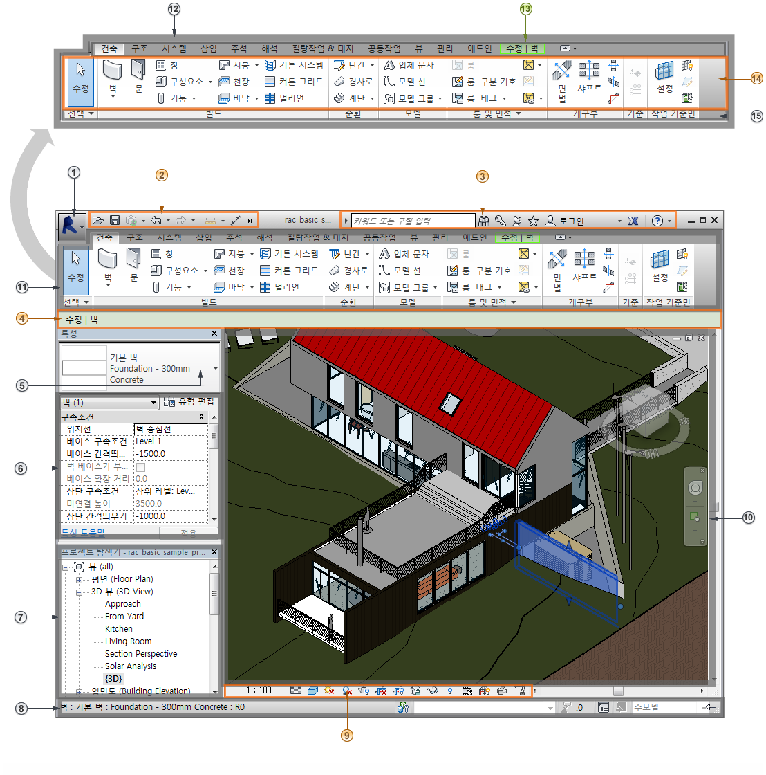 보다 편리한 작업이 가능하도록 클릭 몇 번으로 인터페이스를 변경할 수 있습니다. 예를 들어 네 가지 화면표시 설정 중 하나로 리본을 설정할 수 있습니다. 또한 여러 프로젝트 뷰를 동시에 표시하거나 맨 위에 하나만 표시되도록 계단식으로 정렬할 수 있습니다.