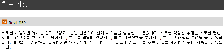 이 예에서 범례는 전체 항목이 Revit MEP 및 Autodesk Revit의 MEP 관련 기능에 적용된다는 것을 나타냅니다.
