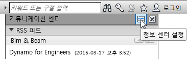 Autodesk Account 및 커뮤니케이션 센터가 있는 경우 알림 동작, RSS Feed 및 정보센터 설정 대화상자의 Autodesk 채널과 같은 설정을 사용자화할 수 있습니다. 이 대화상자를 열려면 Autodesk Account, 커뮤니케이션 센터 또는 즐겨찾기 메뉴의 맨 위에 있는 정보센터 설정 버튼을 클릭합니다.