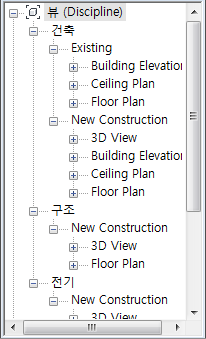 기본적으로 프로젝트 탐색기는 모든 뷰를 뷰 유형별로 표시하고, 모든 시트를 시트 번호 및 시트 이름별로 표시합니다.