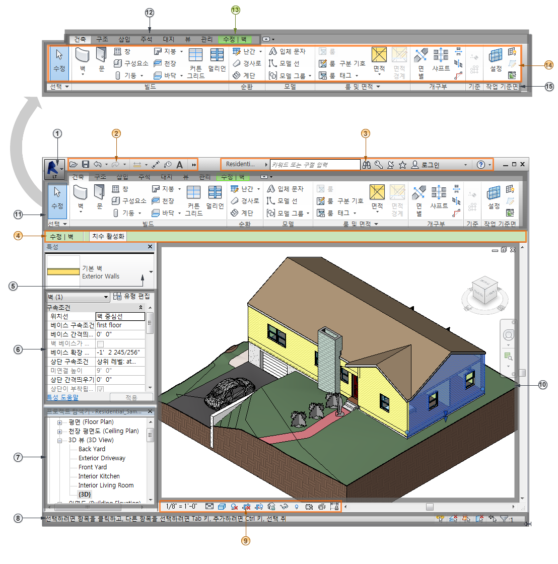보다 편리한 작업이 가능하도록 클릭 몇 번으로 인터페이스를 변경할 수 있습니다. 예를 들어 네 가지 화면표시 설정 중 하나로 리본을 설정할 수 있습니다. 또한 여러 프로젝트 뷰를 동시에 표시하거나 맨 위에 하나만 표시되도록 계단식으로 정렬할 수 있습니다.