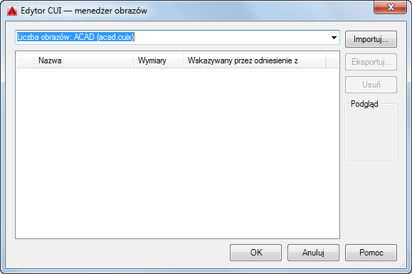 Umożliwia zarządzanie obrazami w wybranym pliku dostosowywania.