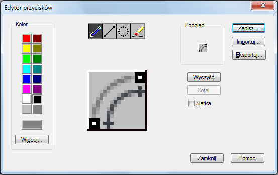 Tworzy linie z użyciem bieżącego koloru. Kliknij i przeciągnij, aby określić punkt początkowy i narysować linię. Zwolnij przycisk aby zakończyć linię.