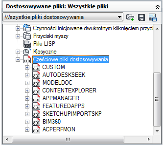 Edytor Dostosuj interfejs użytkownika (CUI) umożliwia modyfikowanie wielu elementów interfejsu użytkownika, które są używane do uruchamiania polecenia w programie.