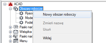 U dołu elementów węzła Obszary robocze umieszczany jest nowy pusty obszar roboczy (o nazwie Obszarroboczy1).